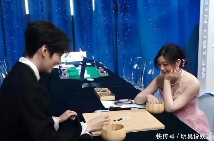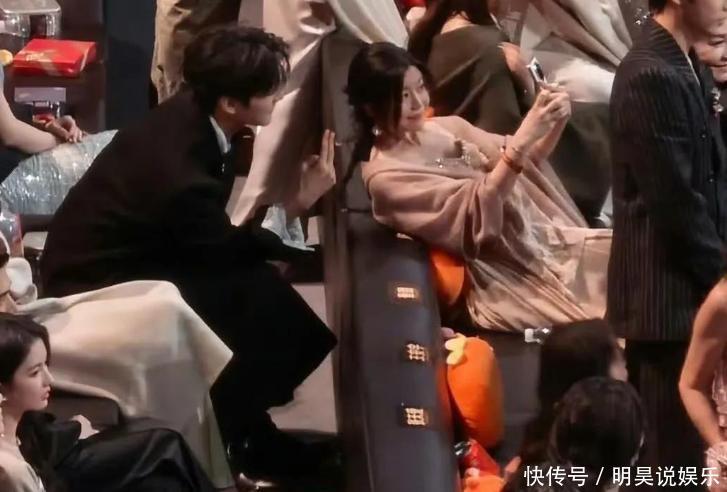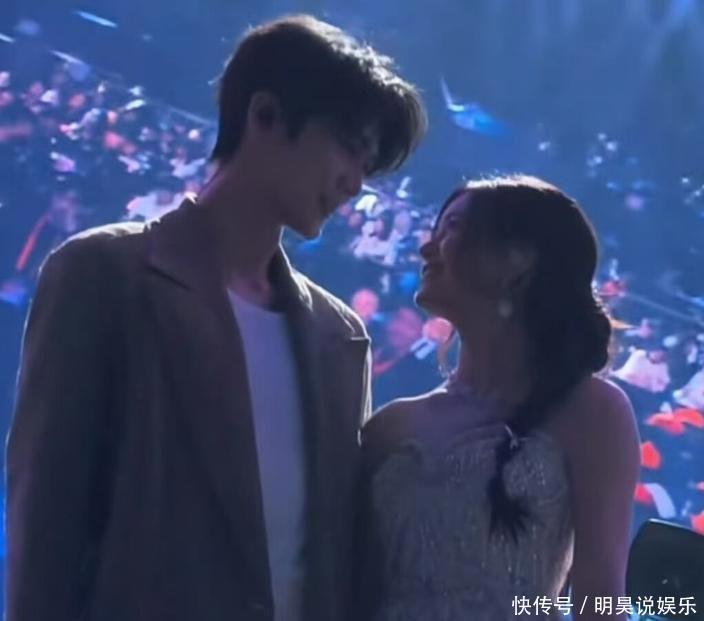 跟大家打招呼时,他显得非常自然大方;而在灯光变暗的舞台上,两人还会偷偷凑近彼此低声交谈,脸上全是那种甜笑,场面挺温馨的。