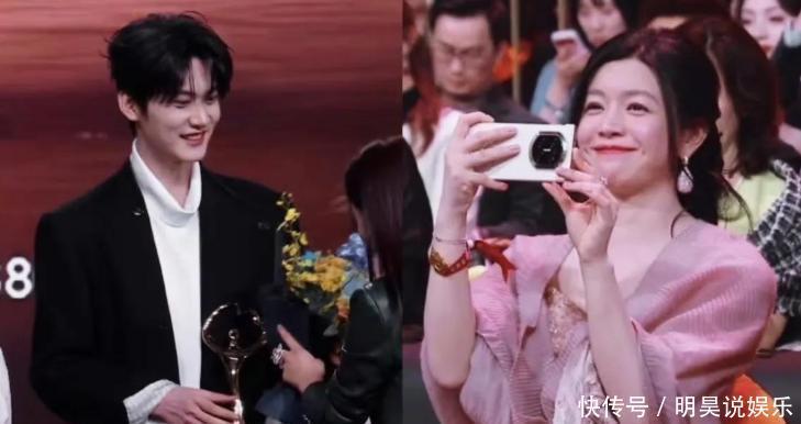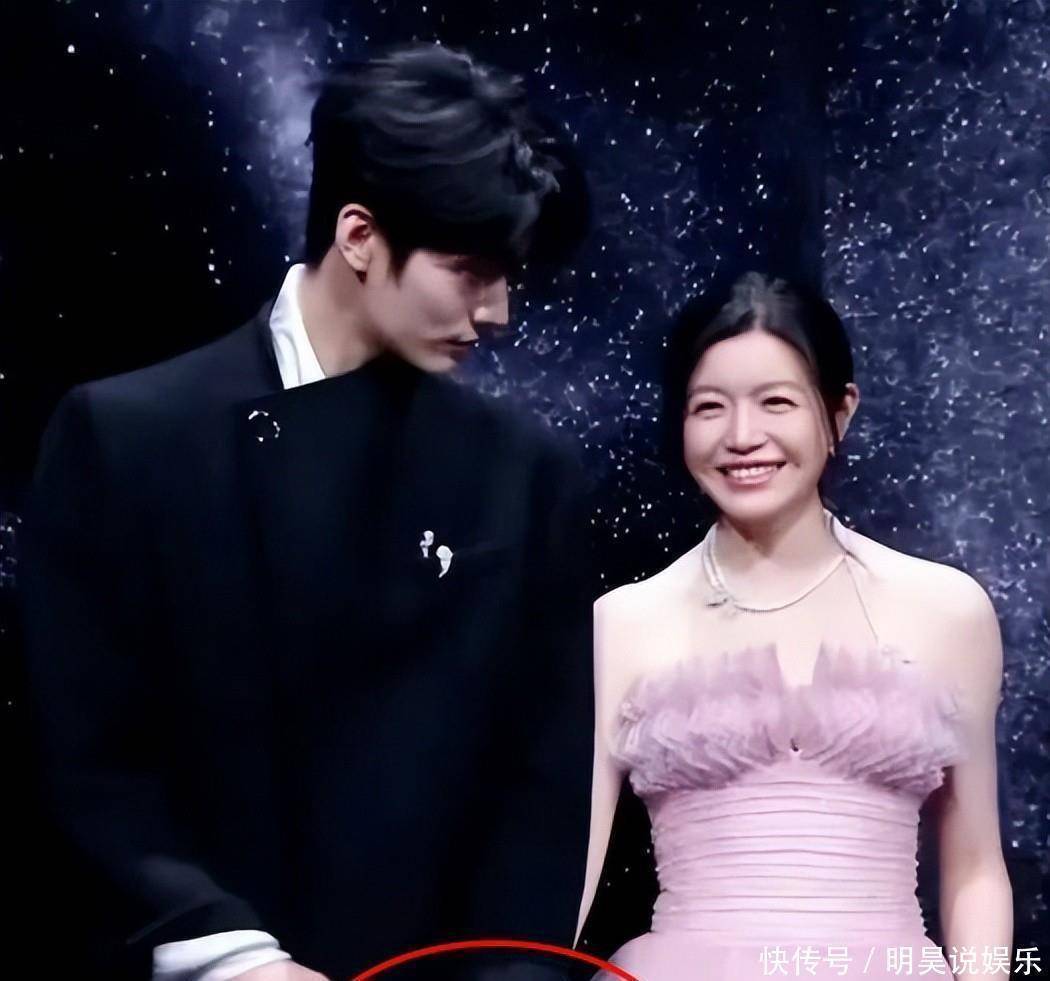 周柯宇穿着一件黑色长款外套,身材挺拔,像模特一样吸睛。而且得说,两人在上台的时候还牵着手,挺有意思的。